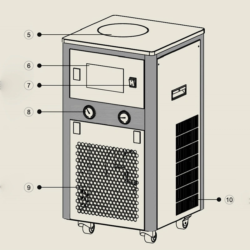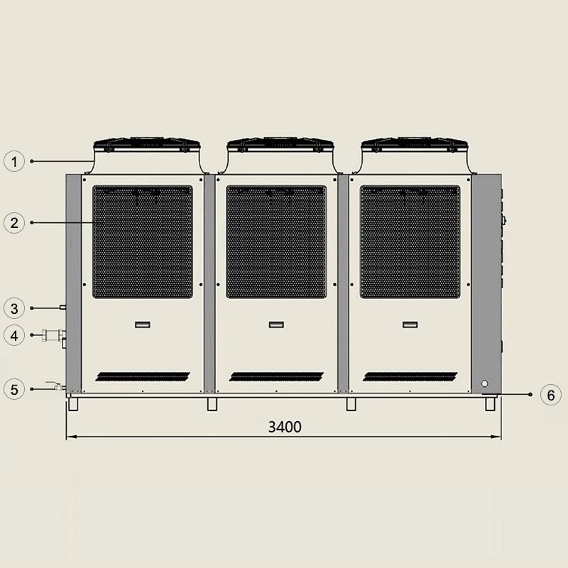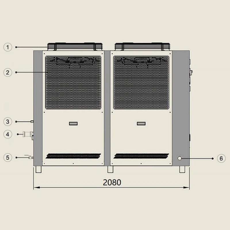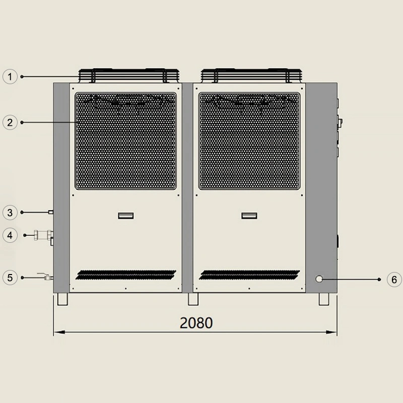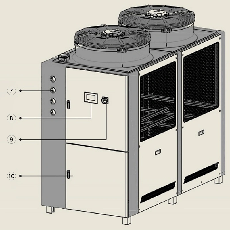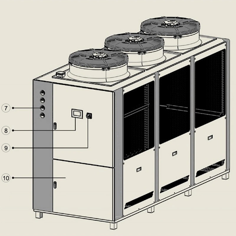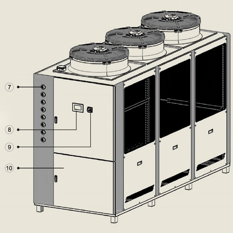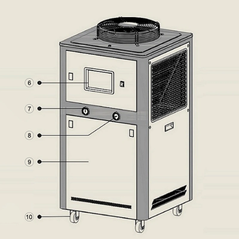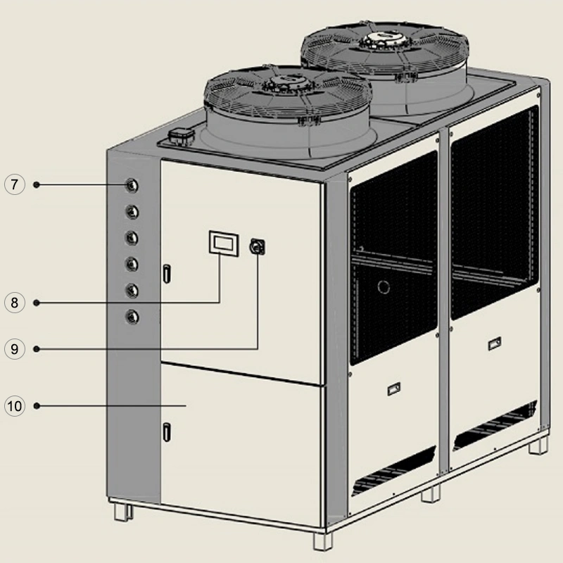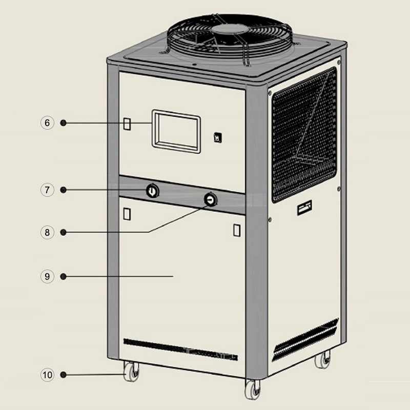 The air-cooled industrial chiller uses ambient air as its cooling source, eliminating the need for a cooling tower or dedicated machine room. It features simple installation, compact structure, and efficient use of space and water resources. The chiller operates with stable performance and precise temperature control, making it widely applicable in temperature regulation for injection molding, chemical processing, laser manufacturing, and food processing industries.